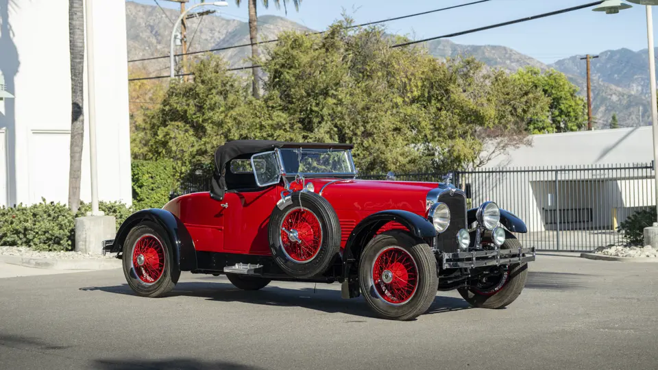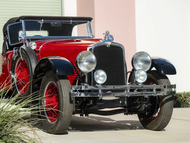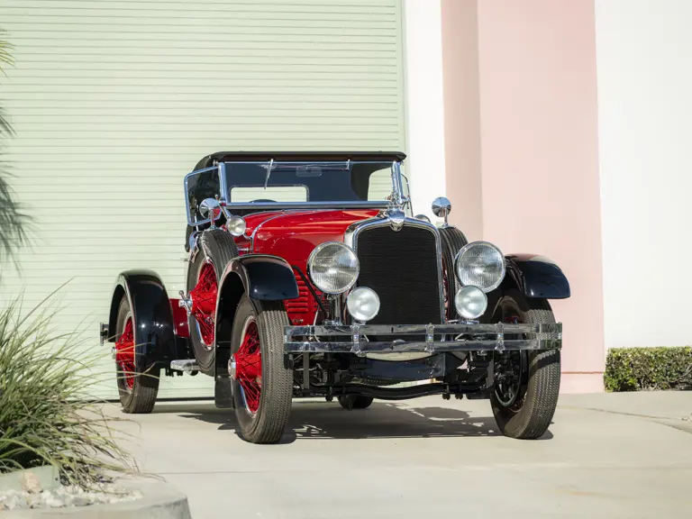 Originally introduced in 1927, the Black Hawk Speedster was the modern successor to the legendary Stutz Bearcat of the Brass Era, as well as the very first true production “boattail” speedster by a major American manufacturer. Its powerful inline Vertical Eight engine, fed by dual Zenith carburetors, and a strong chassis with underslung worm drive combined with a taper-tailed body produced first by LeBaron and later in more serious numbers by Robbins and Millspaugh & Irish of Indianapolis. One of the cars captured the Stevens Trophy Cup at Indianapolis, as well as the AAA Stock Car Championship, proving the black hawk as America’s fastest production car of the period.
