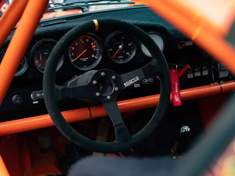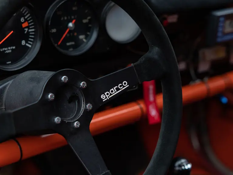 Built as an homage to these competition machines, this Porsche began life as a standard 1977 911 2.7 Coupé but was transformed in the mid-2010s into its current rally-ready specification. Initially dismantled, the chassis and suspension attachment points received additional reinforcement while the body structure’s mass was drastically reduced. The interior was additionally stripped and fitted with a 10-point roll-cage. The windows were replaced with polycarbonate units.