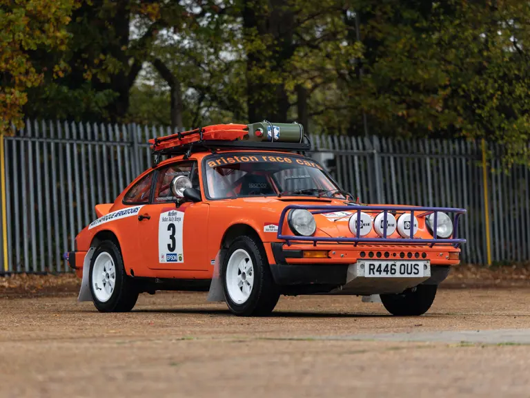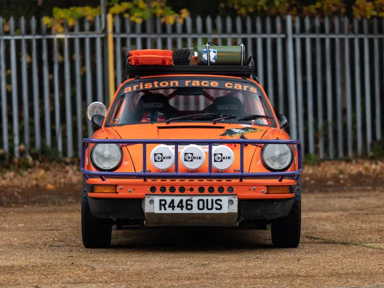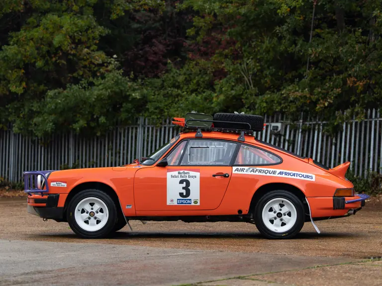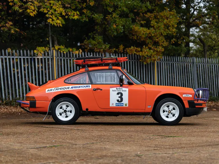 This iconic Porsche 911, which weighs just 960 kilograms fully loaded, is sure to provide an exhilarating driving experience. It has already been proven in the hands of several professional racing drivers and is fully ready for any road or terrain in the world. Like the original Safari cars, it is fitted with Oscar headlights, a roof rack made to measure and designed for raids or safaris equipped with a fuel drum, a spare wheel, plates to get out of mud or sand, shovel, and a pneumatic jack that works with the exhaust gasses. Please note, this 2025 catalogue description has been compiled with older photos. Interested parties are encouraged to inspect the car prior to bidding, and newer photos are available upon request. Please contact an RM Sotheby's Car Specialist for more.