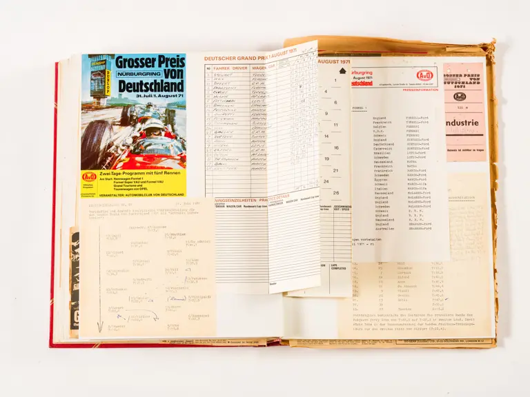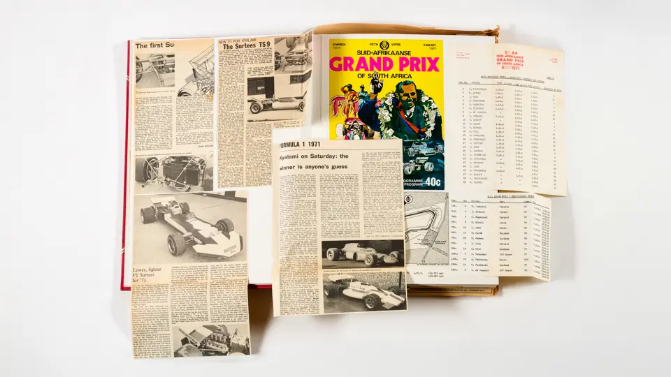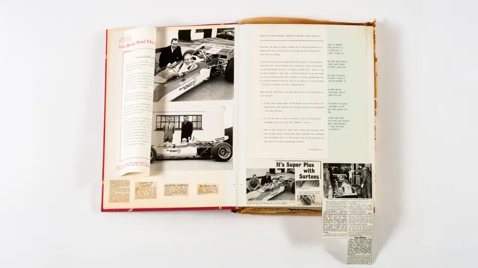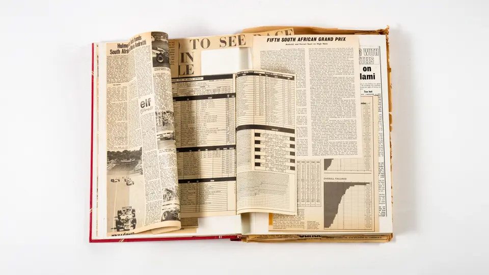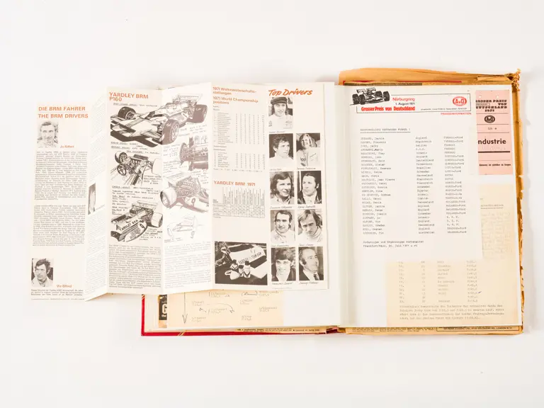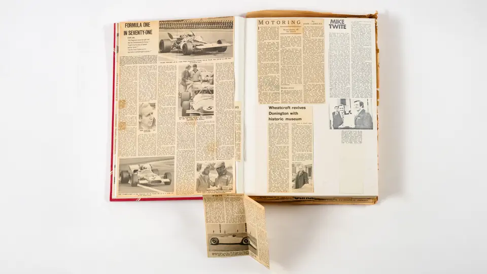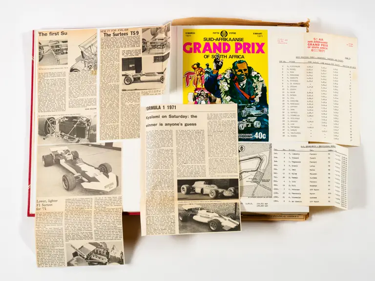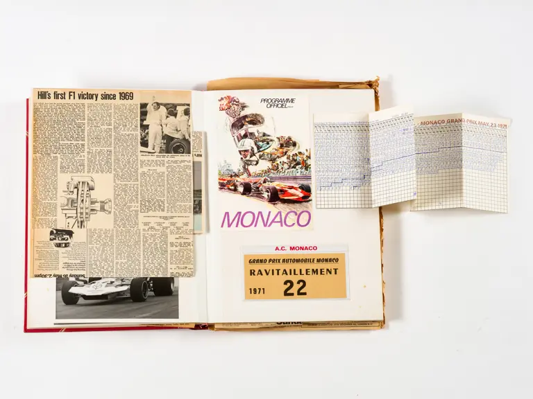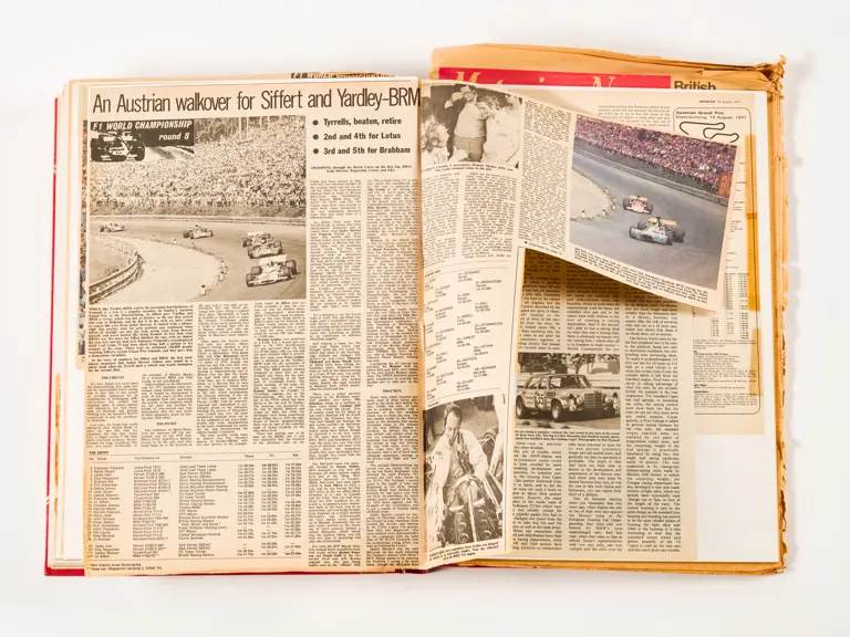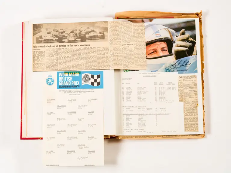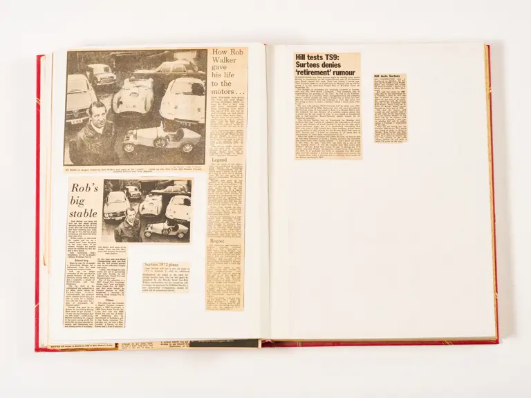 Rob Walker compiled hundreds of photographs, newspaper clippings, race programmes, ticket stubs and various other items during each racing season. Over the winter break, Rob and his wife Betty would spend hours making these beautiful scrapbooks to commemorate the races and events of the year. A simply wonderful compilation of period collectables and information.